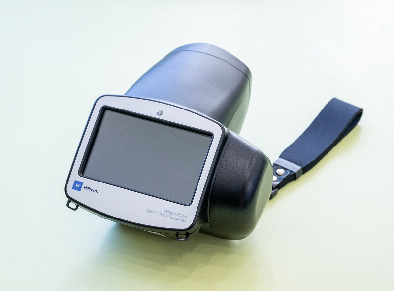スポットビジョンスクリーナーという機械で、生後6か月以降のお子さんの眼の屈折異常(近視、遠視、乱視)、斜視をすばやく簡単に検査することができます。視力が発達していく途中で物をくっきり見ることができない状態が続くと、弱視(眼鏡をかけても視力がでない)となってしまします。そのため早くに検査を行い、発見し、治療することが大事です。検査結果により必要があれば、眼科を紹介いたします。また、当院ではこの検査が必須の3歳児健診だけでなく、10か月健診でも検査しています。